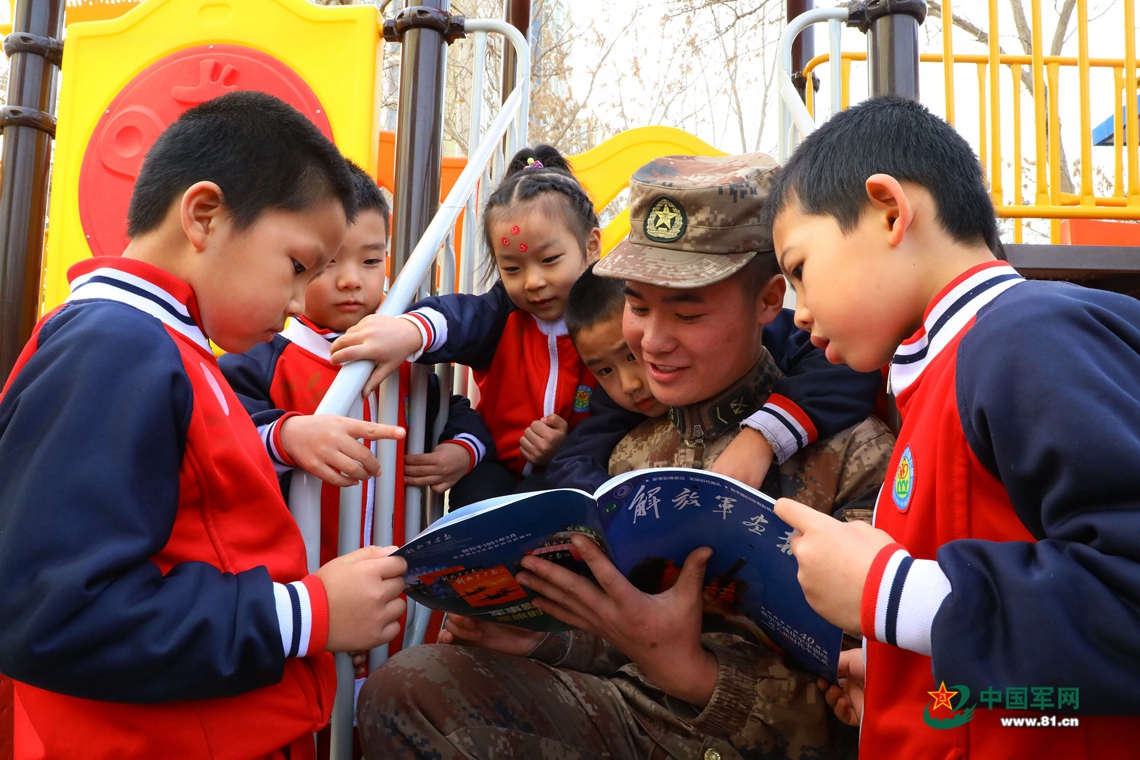 解放军叔叔好!能不能给我讲一讲这个精彩图片是什么呀!3月5日,我们基地的30余名官兵走进驻地幼儿园为小朋友们讲述军营故事。孩子们被解放军画报上的震撼图片吸引,围着战士王探川询问军营到底是什么样子。看到他们对军营充满好奇,我很欣慰。