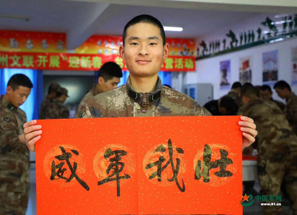 今年的春节超有文艺范儿。2月3日,我们开展“迎新春·书法”进军营活动,邀请5名书法家走进军营,与大家共度春节。书法老师们为战士们写下一幅幅军营春联,喜迎新春佳节的到来。拿到春联的我们喜悦之情不言而喻。