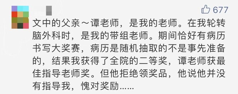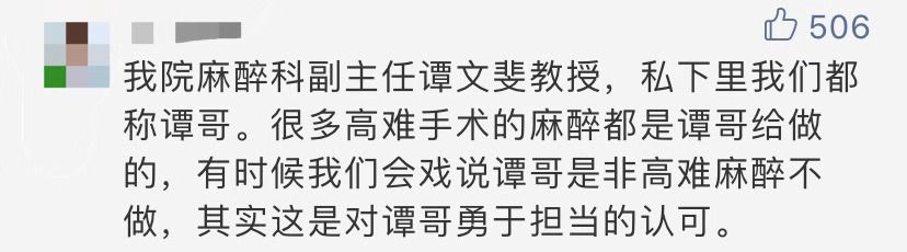 据南方都市报报道,谭文斐还说:“只是我15岁的儿子知道这件事情后非常高兴,今天告诉我,他也想当医生,给我吓到了。其实我不希望他当医生的,太辛苦了,但他现在对医生这个职业很感兴趣。”