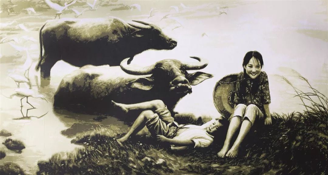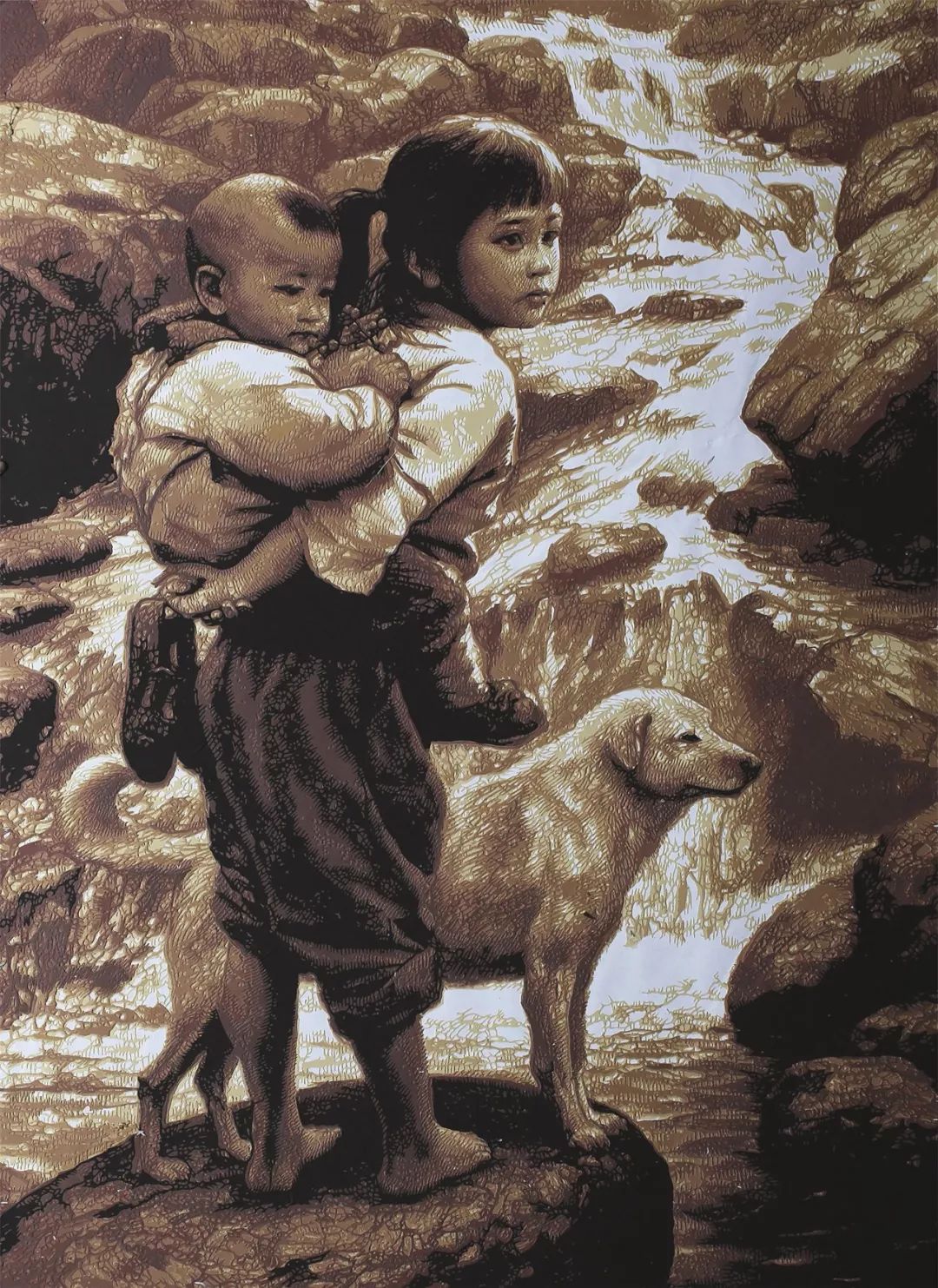 《儿时▪鹭洲》 (油画原作:李自健)110×55cm