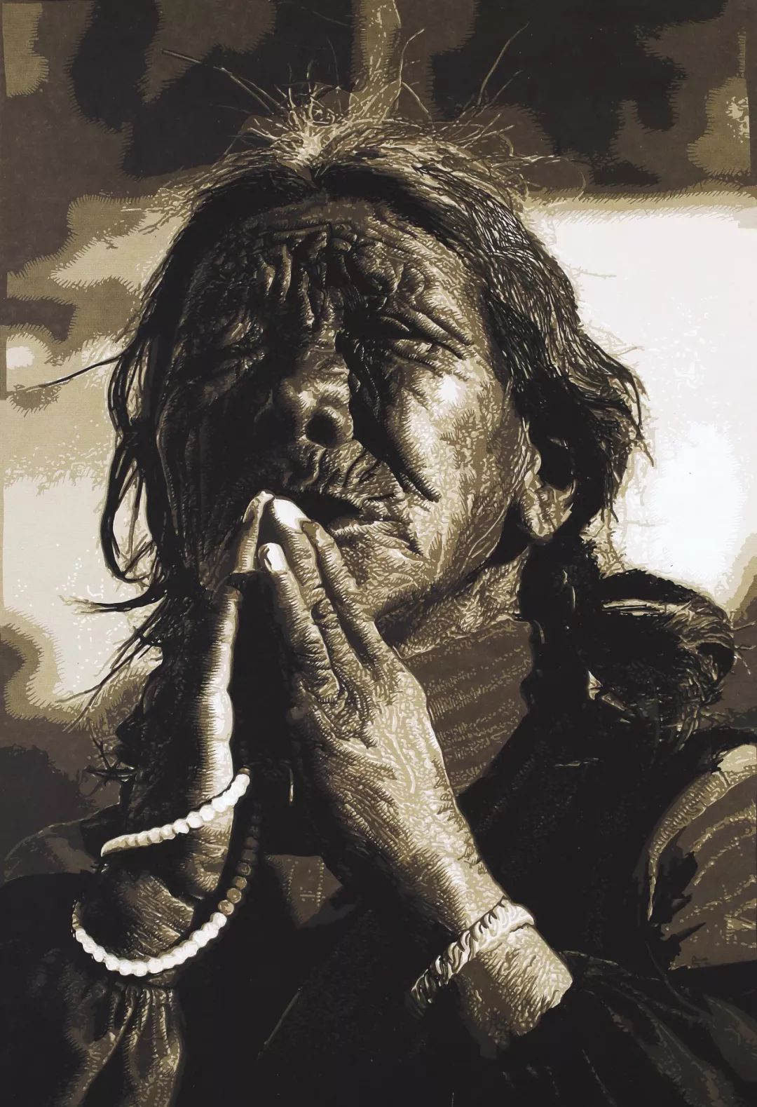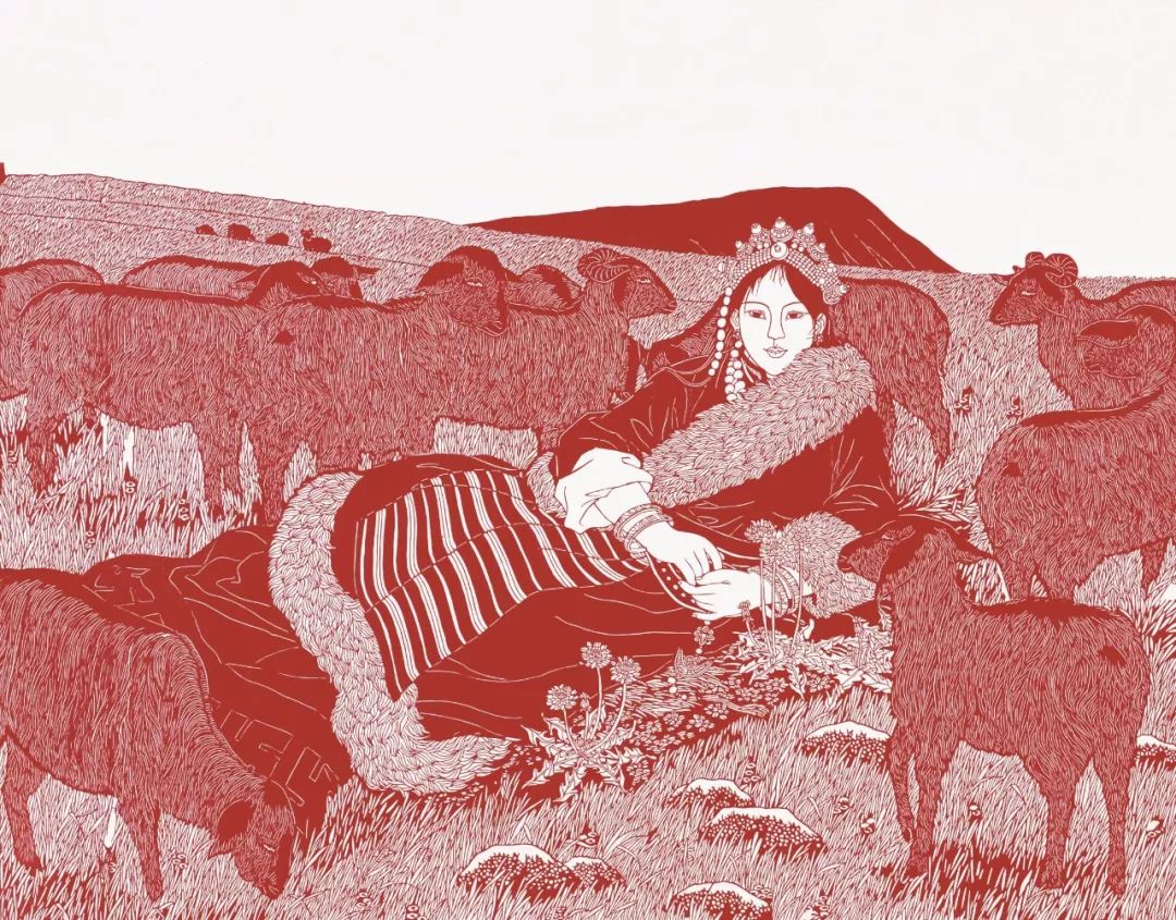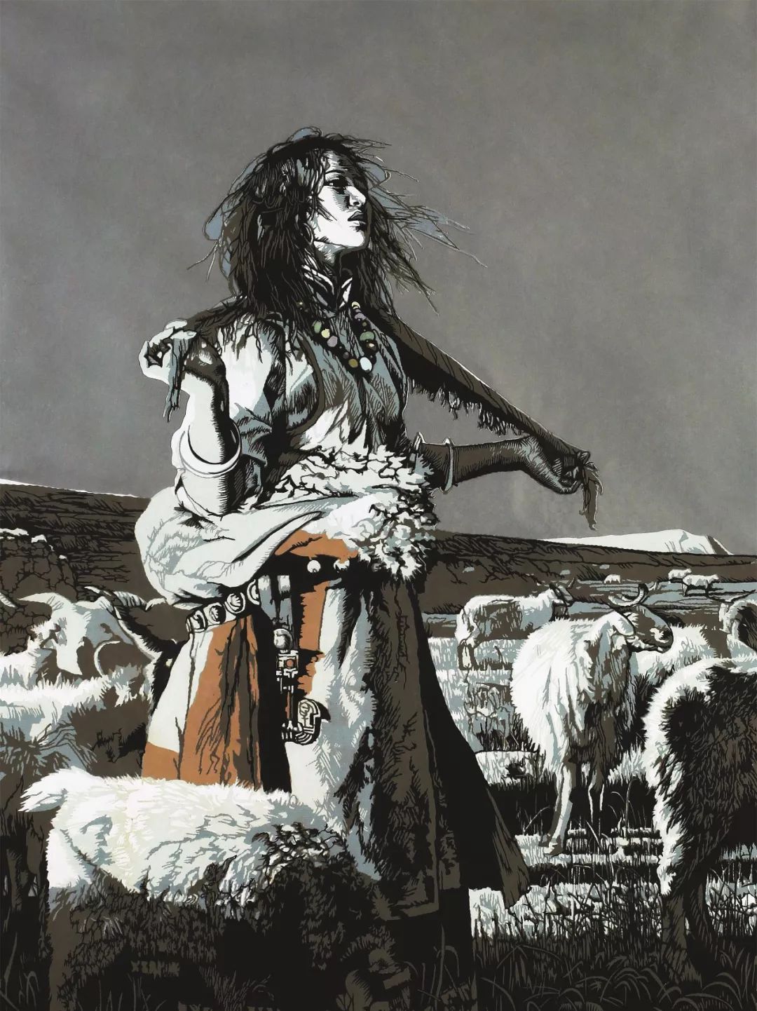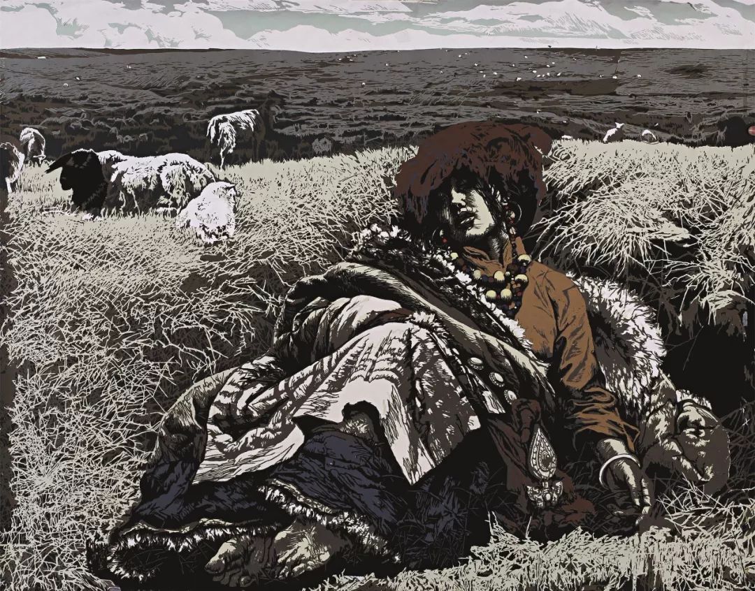 《阿米诺呼山牧羊女》(版画原作:袁庆禄) 125×100cm