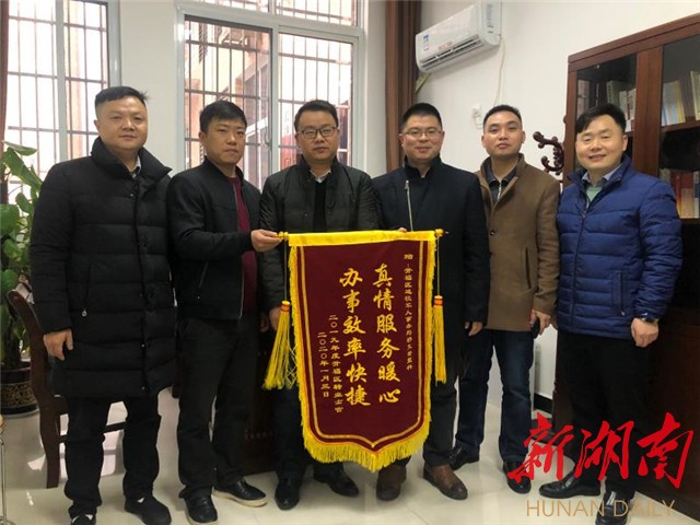 1月6日上午,2019年度开福区接收符合政府安排工作的3名转业士官代表来到开福区退役军人事务局,给局领导和移交安置科送上了一面写有“真情服务暖心,办事效率快捷”的锦旗。