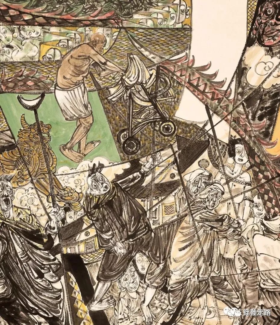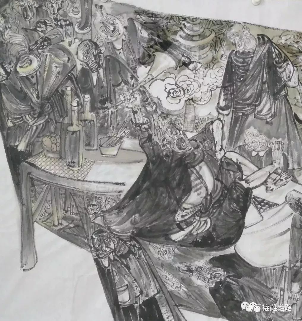 当然可以谈点技巧性的问题,比如那些线条的聚散离合,那些色彩的浓妆淡抹,那些构图的奇崛拙朴,那些意境的忽远忽近,二维空间里避思缕缕,概念提炼的匠心独运,具象与意象,写实与写意,经过一支日趋老辣的画笔进行组合,就是挥之不去的味道:生活的味道,真诚的味道,童趣的味道。就是强烈的劲道:墨舞秋风的劲道,厚积薄发的劲道,直锲人心的劲道。一支画笔与人生的对话,就是这样自由,就是这样任性,就是如此潮。