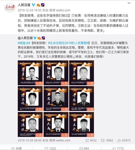 公安队伍是和平年代牺牲最多、奉献最大的队伍,仅2019年全国公安机关就有280名公安民警、147名辅警因公牺牲,6211名公安民警、5699名辅警因公负伤。