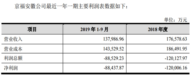 京福安徽是合蚌客专、合福铁路安徽段、商合杭铁路安徽段、郑阜铁路安徽段的投资、建设、运营主体。不同于京沪高铁,京福安徽尚处于亏损状态。公开数据显示,2018年和2019年前三季度京福安徽分别亏损12亿元和8.84亿元。