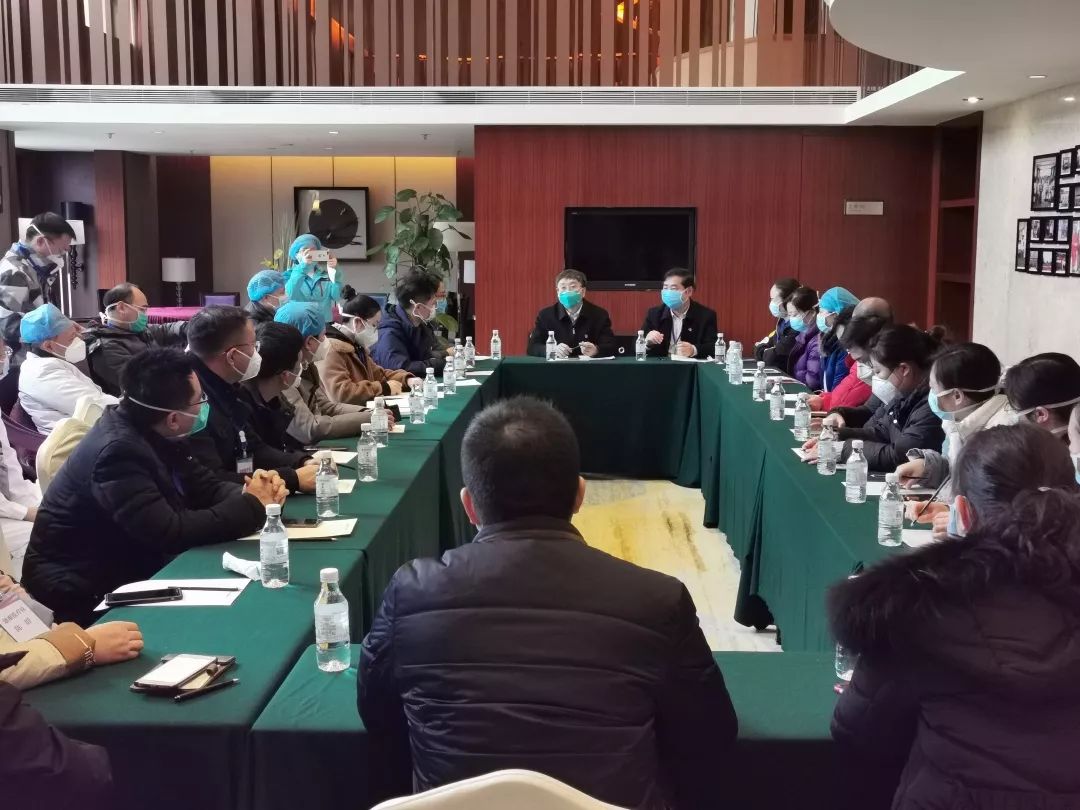 2020年1月26日9:15分湖南省医疗队领队高纪平、副领队朱华波组织湖南省医疗队所有医院队长、副队长、组长及副组长召开了第一次会议。