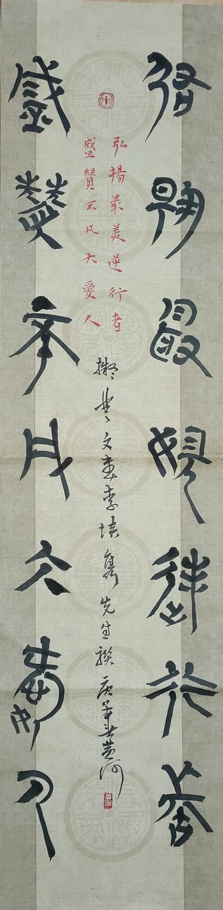 楚简书:“弘扬最美逆行者;盛赞不凡大爱人。”对联
