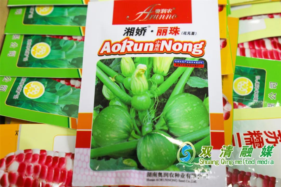 强农种业公司老板李其强是河南驻马店人,在邵阳从事种子行业已经20余年,他正在向顾客介绍一种新品种——无蔓青瓜:“这种瓜相比常见的南瓜成熟周期短,因为藤蔓短还不用搭架子。”