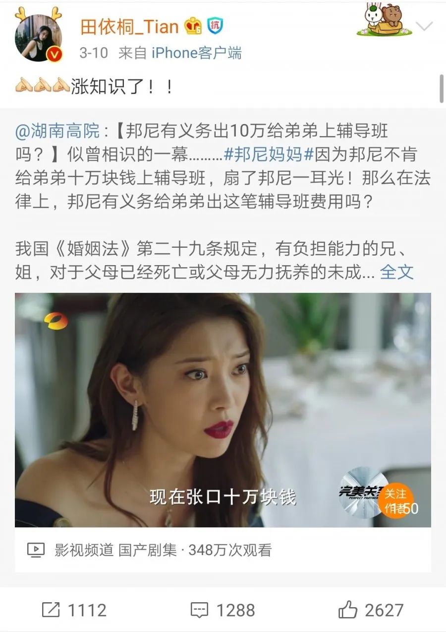 这不,饰演“邦尼”的演员田依桐也翻牌转发”涨知识了!!“