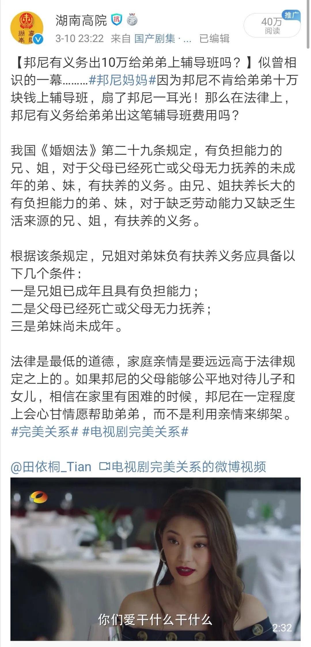 法律是最低限度的道德,家庭亲情是要远远高于法律规定之上的。正如电影台词里说的:法律特别可爱,它不管你能好到哪儿,就限制你不能恶到没边儿。如果剧中这些“樊胜美”式父母能够公平地对待儿子和女儿,相信在家里有困难的时候,女儿在一定程度上会心甘情愿帮衬家里,帮助弟弟,而不是利用亲情来绑架。