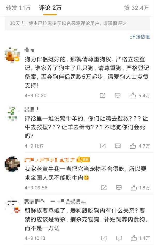 虽然只是征求意见稿并没有定论,且与禁食狗肉并没有直接关系,但是#狗为伴侣动物,拟禁食#这个话题还是上了热搜。