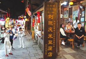 “老板娘,怎么这一路,米豆腐店都是清一色的招牌,都写着‘刘晓庆米豆腐店’?”几位年轻姑娘向老板娘向仍玉询问,究竟哪家是地道正宗的。