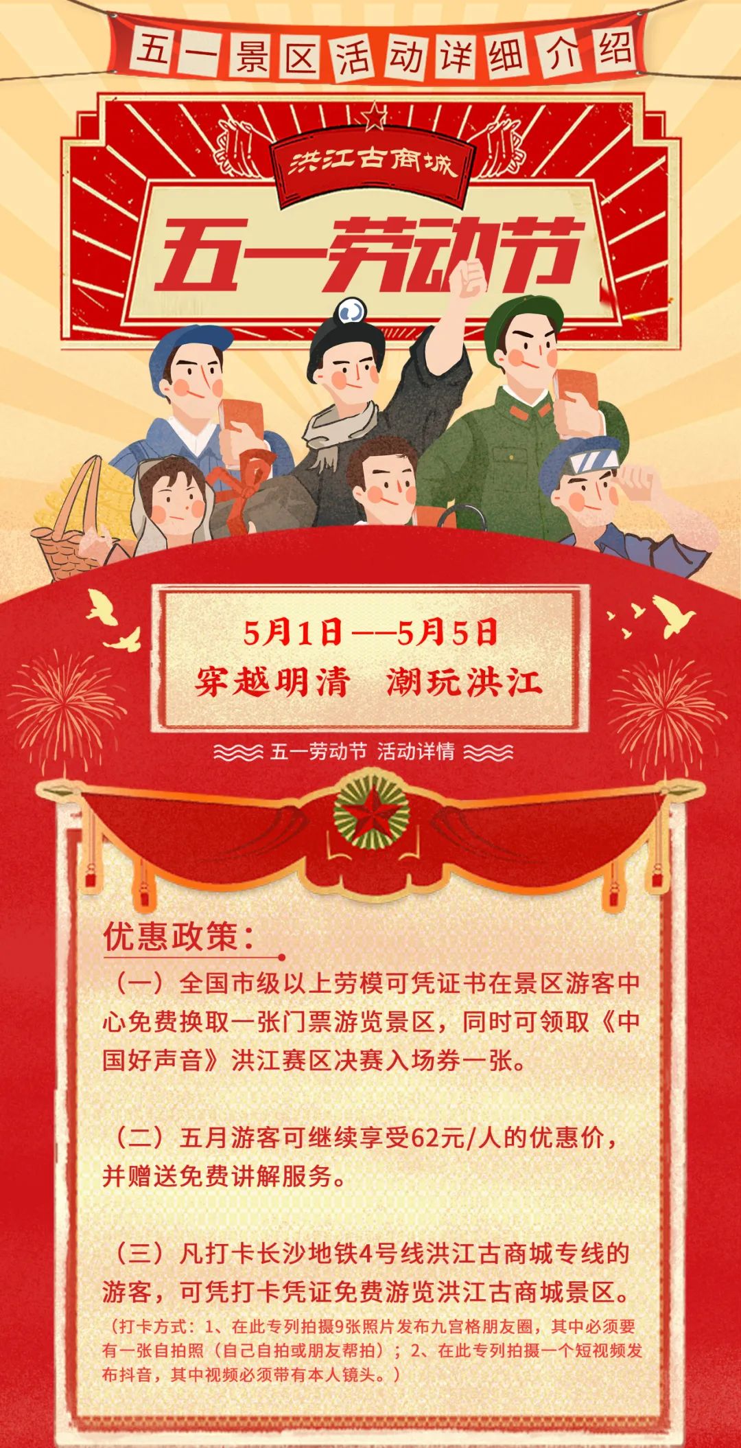 1、“五一”期间,洪江古商城景区对全国市级以上劳模凭证书可享免票政策,同时景区工作人员为每一位劳模准备了《中国好声音》洪江赛区决赛入场券一张;