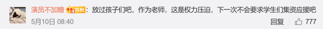 学校是老师教书育人和孩子学习成长的地方。很多网友表示,老师不能因为一己私心,让学生成为追星应援的工具。“喜欢哪个明星是你自己的事情,利用小孩子做这种事就过火了。”
