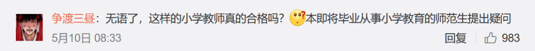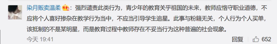 还有网友表示,老师的所作所为非常不合格,支持有关部门进行处理,“教师本人应该有工作和爱好的界限感”“希望每个人都可以遵守自己的职业规范和行业底线”。
