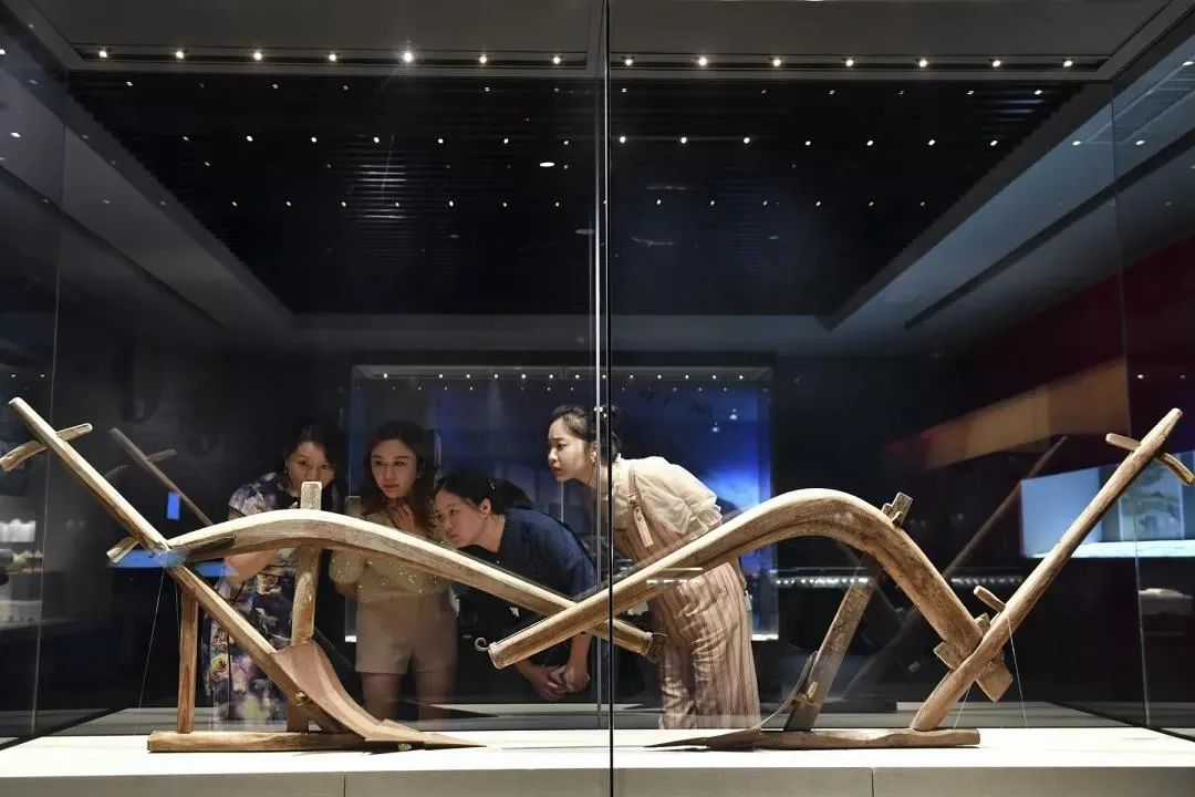 耕作方式的演变不仅是一部水稻农业科技史,更是一部记录中华民族不懈开拓、垦殖、成长和进步的史诗。在现场除了丰富的科普展示之外,琳琅满目的实物展,石斧、石犁、铜斧、曲辕犁等农业器械一秒唤醒久违的农耕记忆,通过雕塑、光影、背景等元素还原逼真的农耕场景,野趣十足。