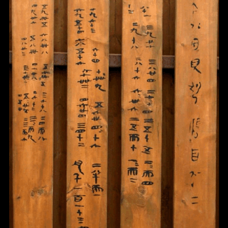 此外,与“里耶秦简九九表”齐名的镇馆之宝还有“迁陵洞庭郡”简和“迁陵以邮行洞庭”简。前者见证了秦朝对于郡县制的划分,后者则被视为中国邮政史的开端。