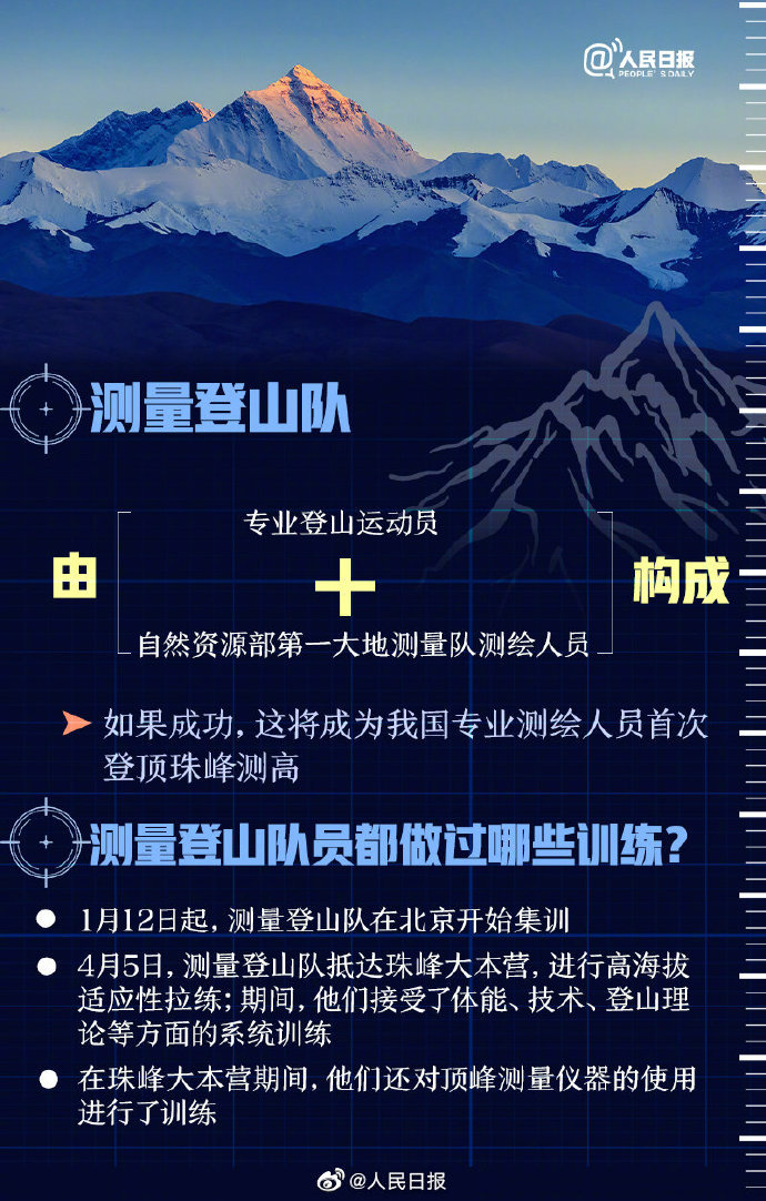 另据新华社消息,他们将在峰顶竖立觇标,安装GNSS天线,开展各项峰顶测量工作。