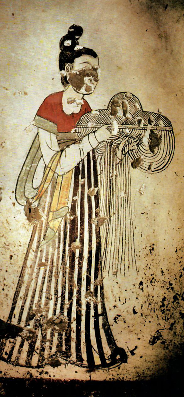 《持羃 女侍图·》唐(燕妃墓出土)图中人物手持纱状羃