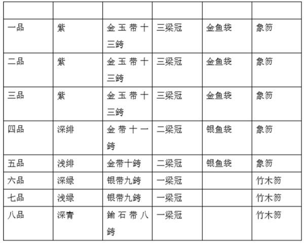 唐代官僚服制等级表