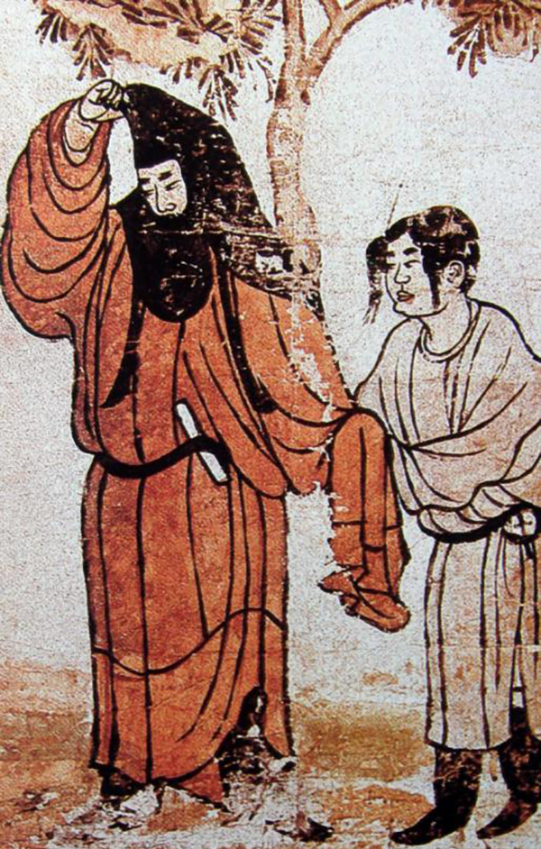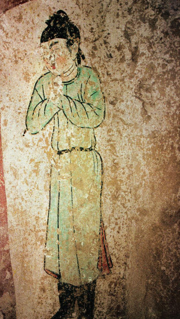 袖手男装女侍图·唐(唐韦贵妃墓出土)·图画中的是着绿衫的官员