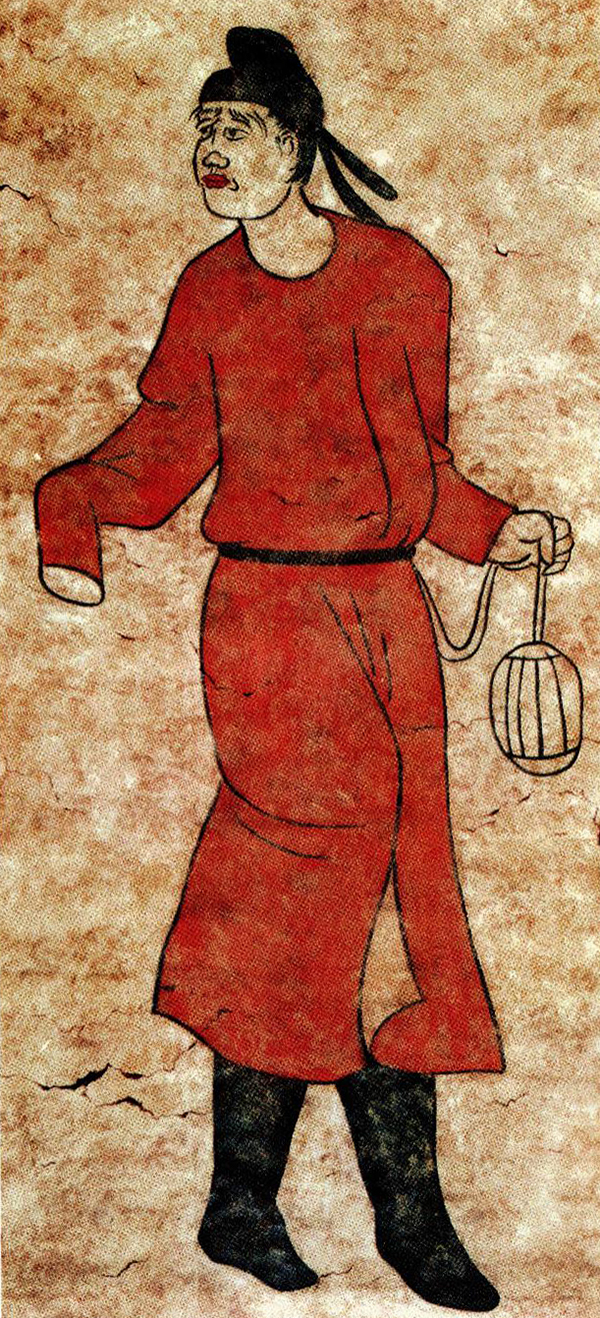 《提槃囊给使图(摹本)》·唐(阿史那忠墓出土)·图中人物为着绯红袍的官员