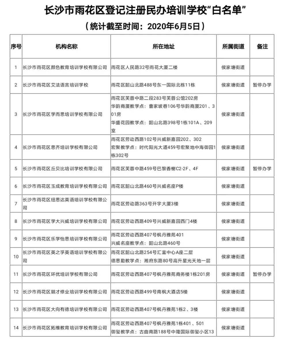 校外培训机构的白名单,