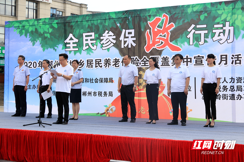 6月18日上午,郴州市举行以“全民参保‘政’行动”为主题的“城乡居民养老保险全覆盖集中宣传月”活动启动仪式。