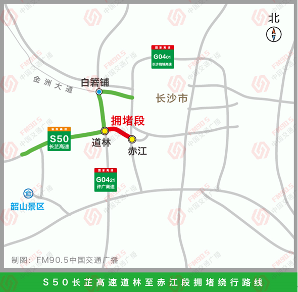 1.金洲大道↔白箬铺收费站↔许广高速↔道林枢纽。