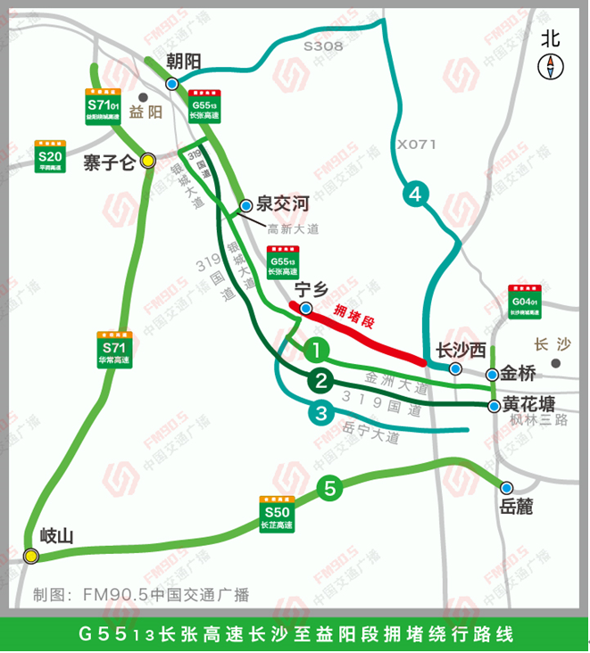 5.岳麓收费站↔长芷高速↔岐山枢纽↔华常高速↔寨子仑枢纽↔益阳南线高速。