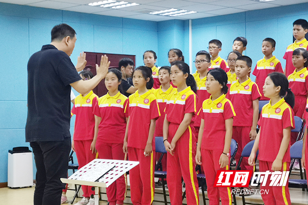 ▲祁东县启航小学排练厅里,几十张童真的面孔投入地歌唱。