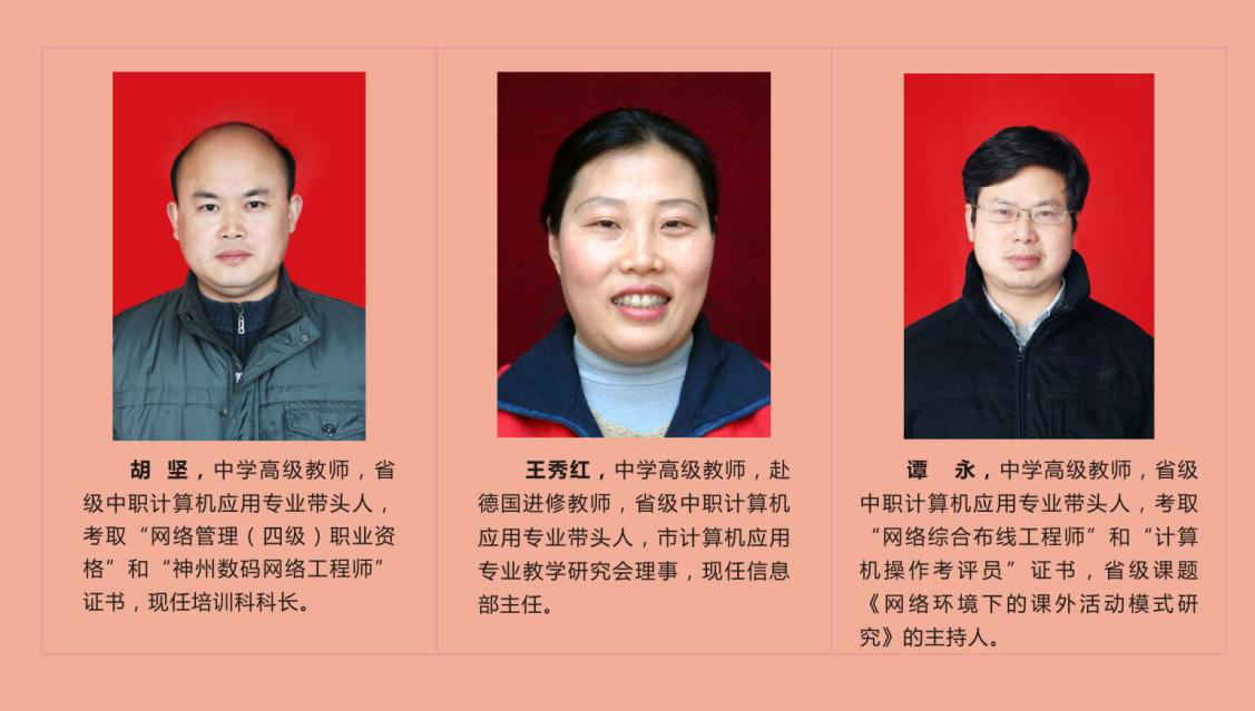 主要课程:电子与电工的技能与训练、网络操作系统、网站建设、网络设备调试、信息安全技术、数据恢复、综合布线