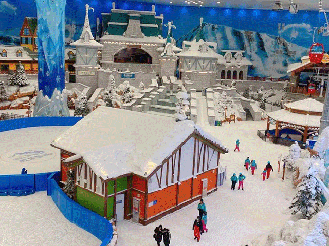 雪景餐厅-领取雪具-更换雪服-滑雪区。