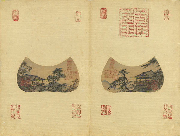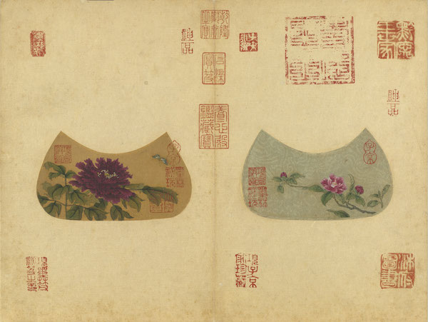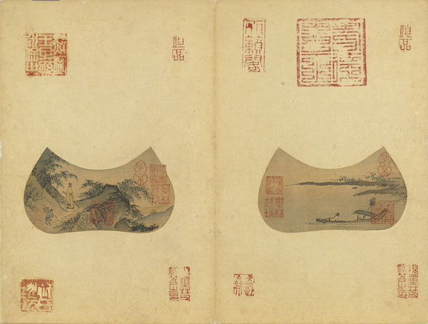 《画明皇会棋图》旧传为南唐周文矩所作,但从画风看,与元代任仁发更为接近;而马远《小品》册图绘各种花卉,尤其罕见的是画心作独木舟式,署梁楷的《东篱高士图》应是精彩且忠实追随梁楷画风的作品。