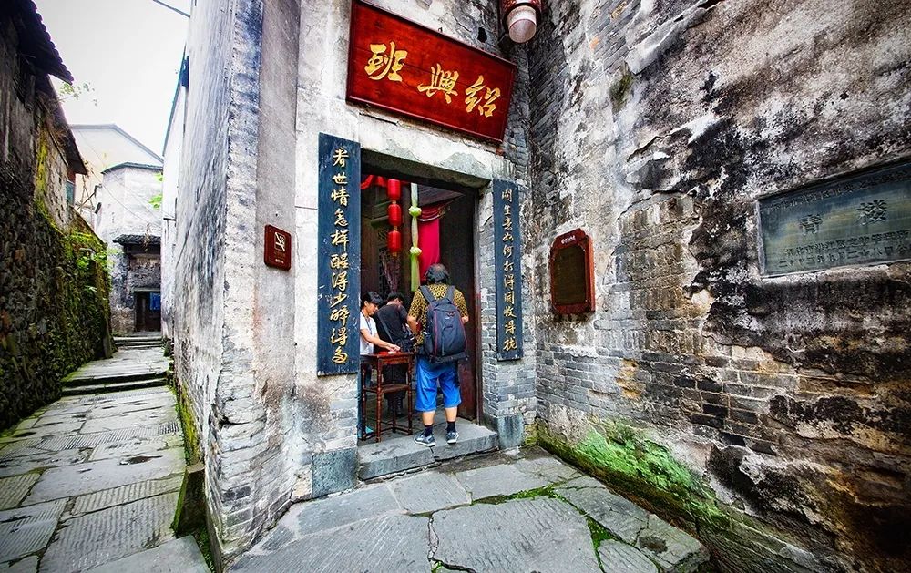 绍兴班,是一座四周用封火墙围护的木质穿斗式的结构建筑,单檐重层,两进三层,各层楼道封闭,分隔有致。
