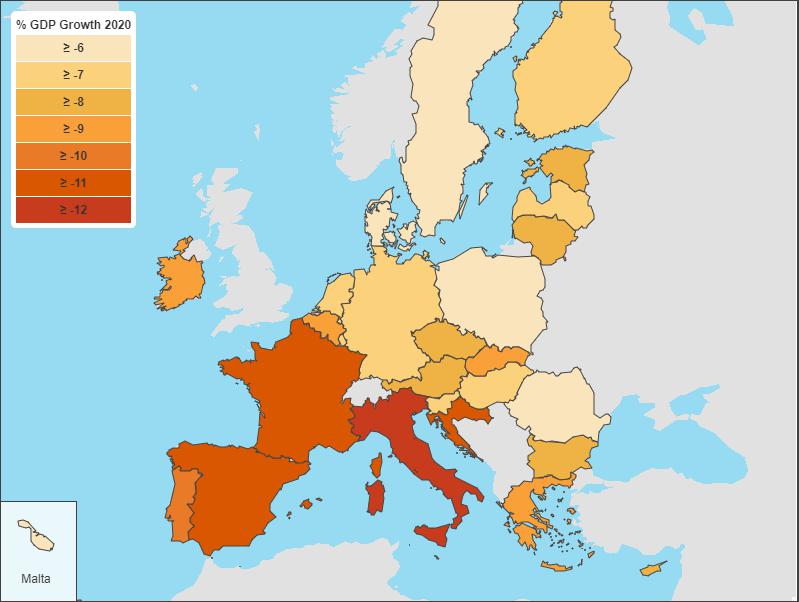 随着欧洲疫情整体好转,各国纷纷放松封锁,加速经济重启。然而,疫情的冲击逐渐显现,导致欧洲近期数据不容乐观,经济下行压力仍然巨大。近日,欧盟发布的夏季经济预测报告指出,今年欧盟经济将萎缩8.3%,明年的复苏也将更加缓慢。其中,意大利形势最为严峻,今年该国经济预计将收缩11.2%。西班牙和法国经济也“高台跳水”,预计将分别下滑10.9%和10.6%。此外,脱欧后的英国经济也遭疫情重创。截至五月,全国GDP在三个月内萎缩19.1%。英国预算责任办公室称,该国将面临300年以来最大经济衰退。如今疫情尚未结束,局部地区出现反弹,这更令欧洲经济重启举步维艰。