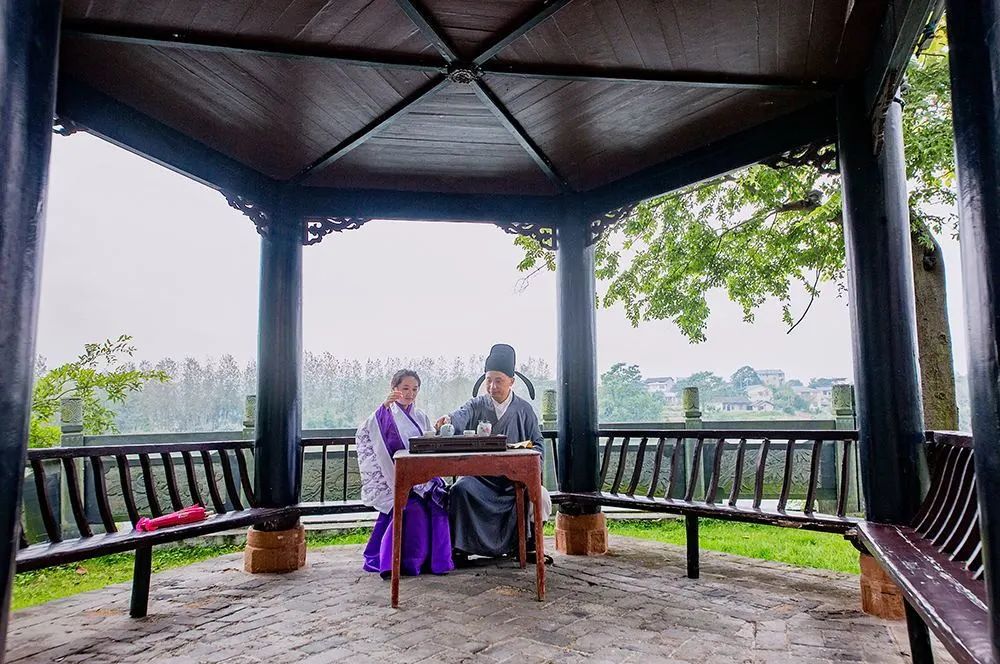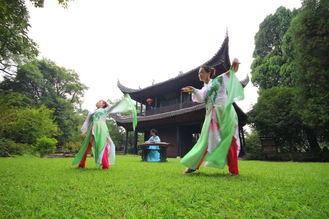亭内抚琴,池边弄月~