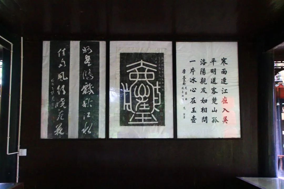 在龙标胜迹门侧前方,芙蓉楼前的潕水江边,建立一亭,亭柱有楹联“名花好共题诗句,寒雨曾经送客舟”,为清朝道光年间的进士王诰所撰