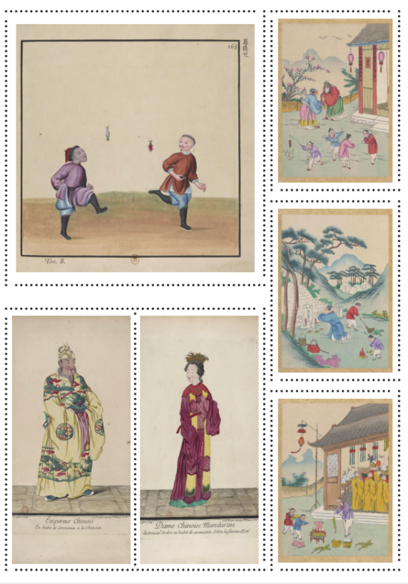 该书所选用图片,均为外销画。所以在一开始,我们需要明确外销画的定义。外销画兴起于18世纪中叶左右,采用西方的绘画材料工具及技法,作品大多为油画、版画、水粉画和玻璃画等。内容集中于表现当地人们的风景风俗、日常生活面貌,其中以当时的通商口岸广州最为多见。因其采西方形制表现东方韵味,颇受洋人喜欢,多销往国外市场。有趣的是,当时的画师将其称为“洋画”,而外国的购买者们则称其“中国画”,进入到20世纪中后期,西方的艺术史研究学者们才统一称之为“中国外销画”或“中国贸易画”。