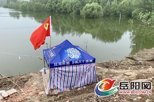 岳阳日报全媒体讯(记者 周小平 通讯员 吴巍伟)7月26日11时许,位于湖北省石首市的长江调弦口闸还整体淹没在39.05米的高洪水位中,肆虐的洪水仍在上涨。大堤内侧的进水闸月圩矮堤上,一面鲜艳的党旗迎风飘扬,旗杆下的简易守闸棚里,来自华容县万庾镇的3名守闸人,正一刻不停地监测着闸内情况。