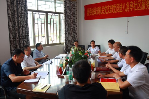 图为龚文密在儒林镇八角社区主持召开“无会周”下访督办信访事项工作座谈会