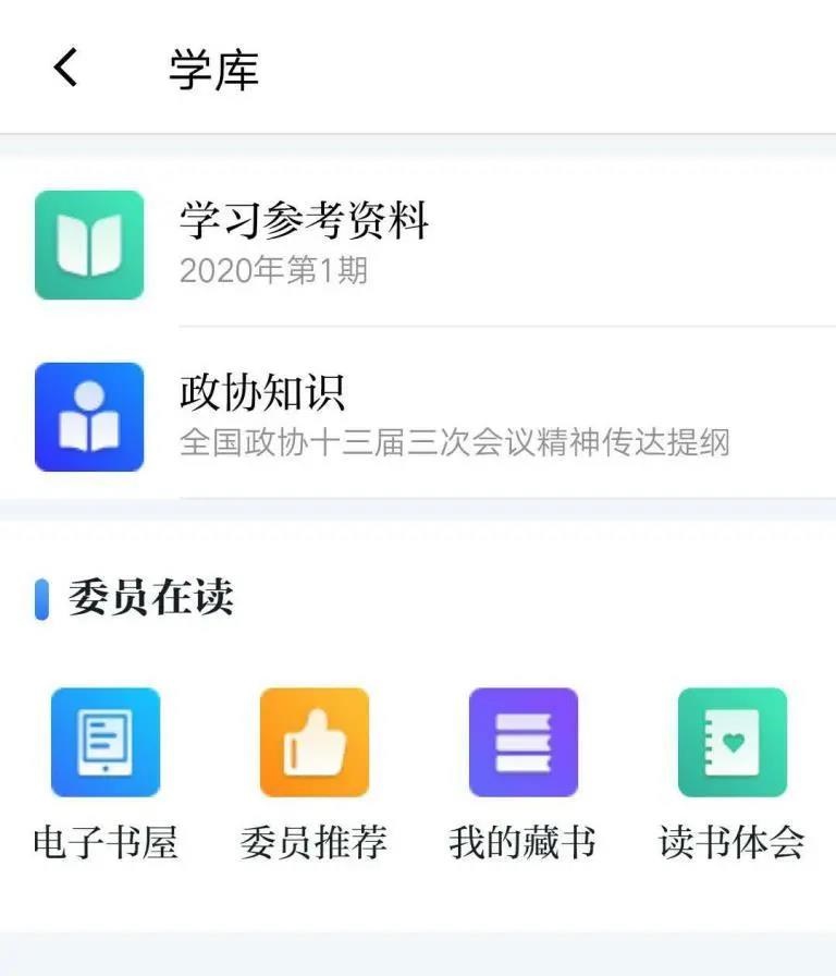 9.政协云“学库”近日上线试运行,有“学习参考资料”“政协知识”“电子书屋”“委员推荐”“读书体会”等栏目,还有“数字文史馆”“数字图书馆”“省图代查”“政智潇湘”等供委员查阅资料,内容海量,三级用户还可联动加入读书交流群在线讨论,“读书+交流”很方便。