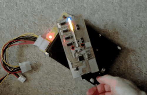 用这种视觉残留现象,再加上单列的 LED 灯柱,就可以做出「晃晃灯」啦~这也是我大学时隔壁班学机械电子的同学,基本人人都要做的作业……只靠这么单独一列的 LED 小灯,然后计算好底盘的转动速率,再去平衡好灯的闪烁变化频率,看起来就很稳定的显示文字了。