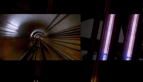 那这玩意儿的原理和地铁隧道广告又有什么关系?现在你深呼吸一口气,平复一下心情。你想啊……我们去看整个「闪字风扇」时,是我们人眼保持不动。那如果灯柱不动,人眼在动,这不就是我们看地铁隧道广告的场景吗?在坐地铁时,我们人眼跟着地铁一直在朝着一个方向快速平移,而这个 LED 的灯柱则是固定在隧道里不动的,把人眼作为参照物,那LED灯柱就是运动的,这样就会产生视觉残留。