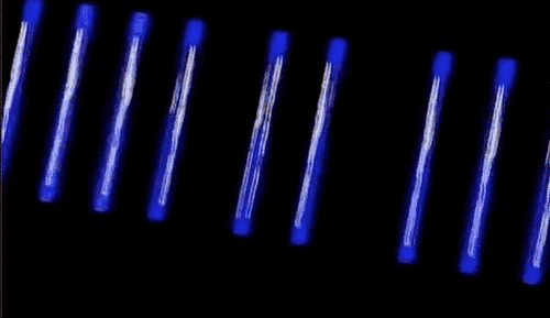 我先透个底:原理是下图演示的一条条单列 LED 灯柱,被依次有间隔的排开后,给安装在了地铁隧道的墙上,这样地铁一运行,就能通过窗外看到墙上的广告了……