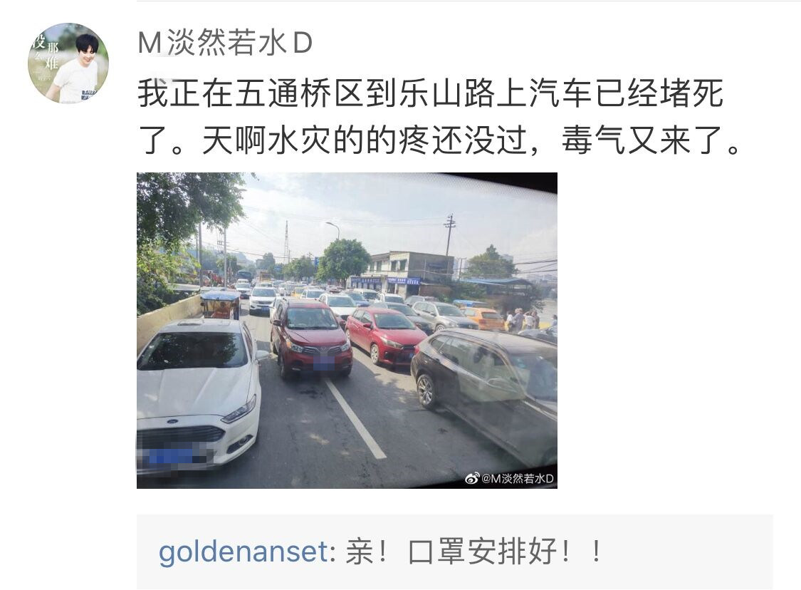现代快报记者通过网友拍摄的现场画面发现,五通桥附近白雾笼罩,主干道车辆堵塞,居民正在紧急撤离。
