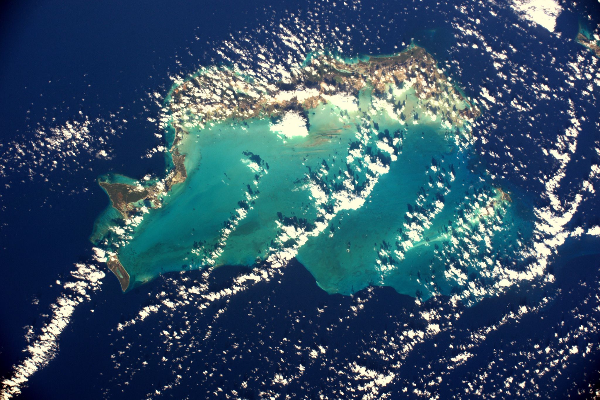 当空间站飞越加勒比上空时,托马看到了天堂般的景象:深蓝色的海水包裹着特克斯和凯科斯群岛,苍翠的植被覆盖其上;岛屿的边缘却溢出了大片的松石绿,像是被浸湿了的水粉画,还有白色的云朵点缀着整幅画面。