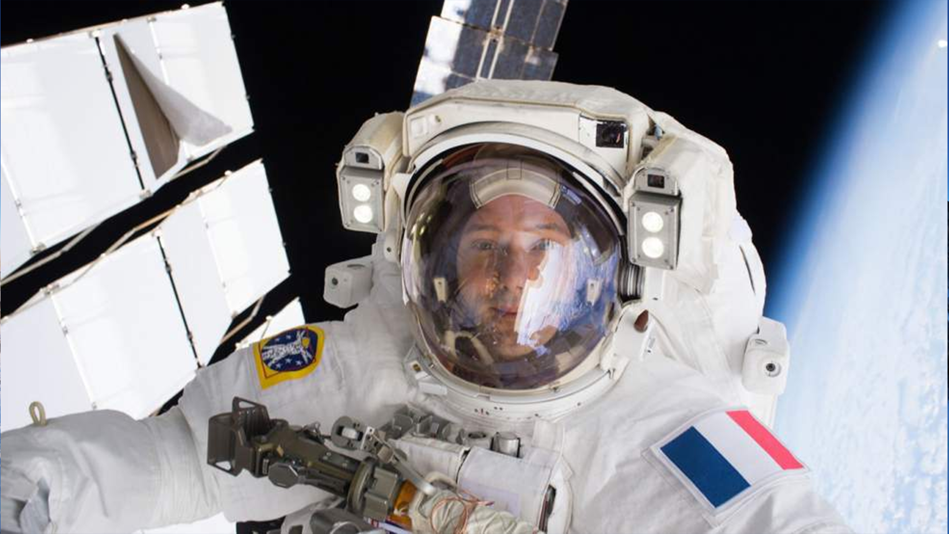 2017年1月13日,宇航员托马·佩斯凯在太空的自拍照。
