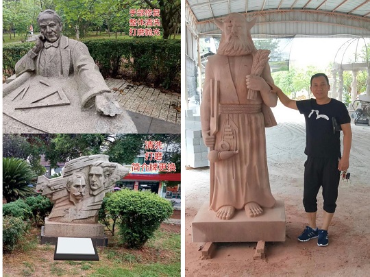 随着我市创文工作不断推进,发明家广场管理处决定对包括蔡伦铜像在内的大小11座雕像进行清洗、维修。曾获“最美工匠”荣誉称号、现任耒阳市盛唐石业有限公司董事长李晓雪欣然接受了这个维修任务。他表示不要任何费用,立马安排公司设计师进行施工设计,并自己出资十余万元,购买材料,并请来湖北技术人员进行清洗和修缮。目前已开工四天,广场上的袁隆平铜像已恢复原来金灿灿的模样,在阳光的照耀下熠熠生辉。据李晓雪介绍,整个工程将在半个月内完工,届时所有铜像和石像将以全新的面貌示人,为我市“创文”助力。(梁昕)