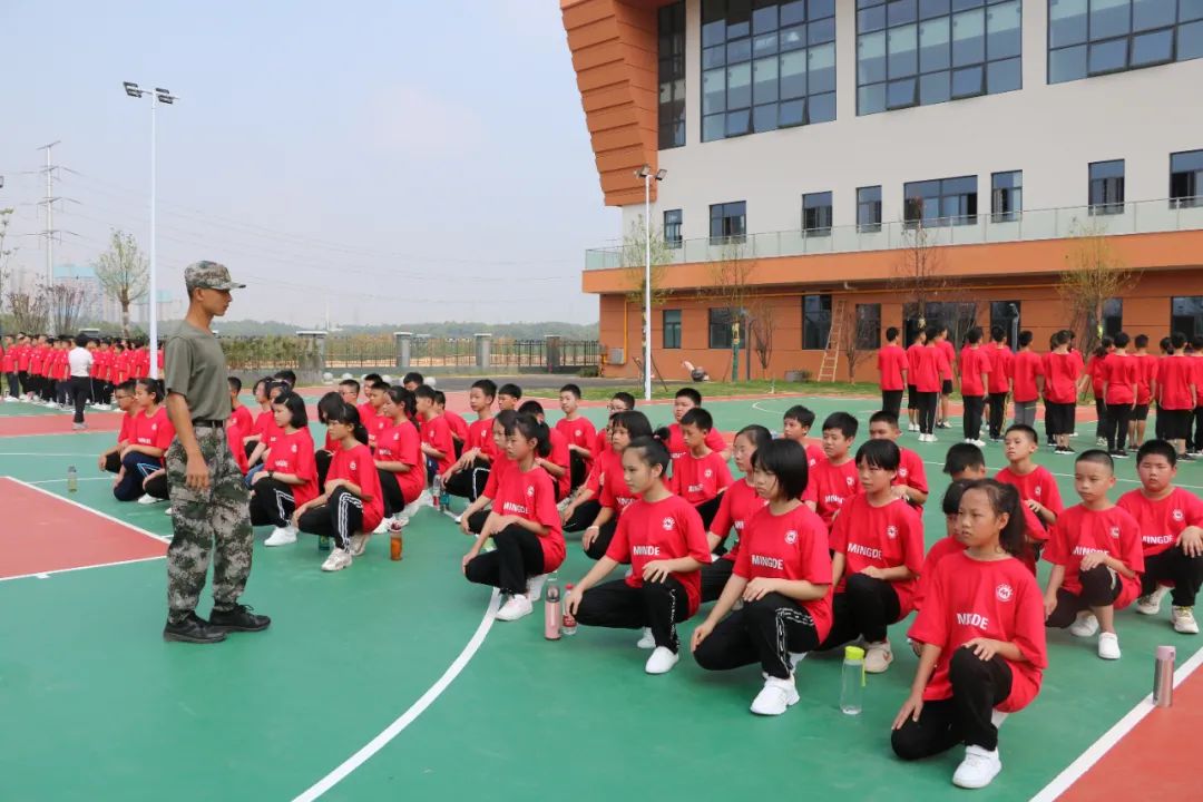 ▲还有的初一新生排着整齐的队列,以饱满的精神、飒爽的英姿参加军训。